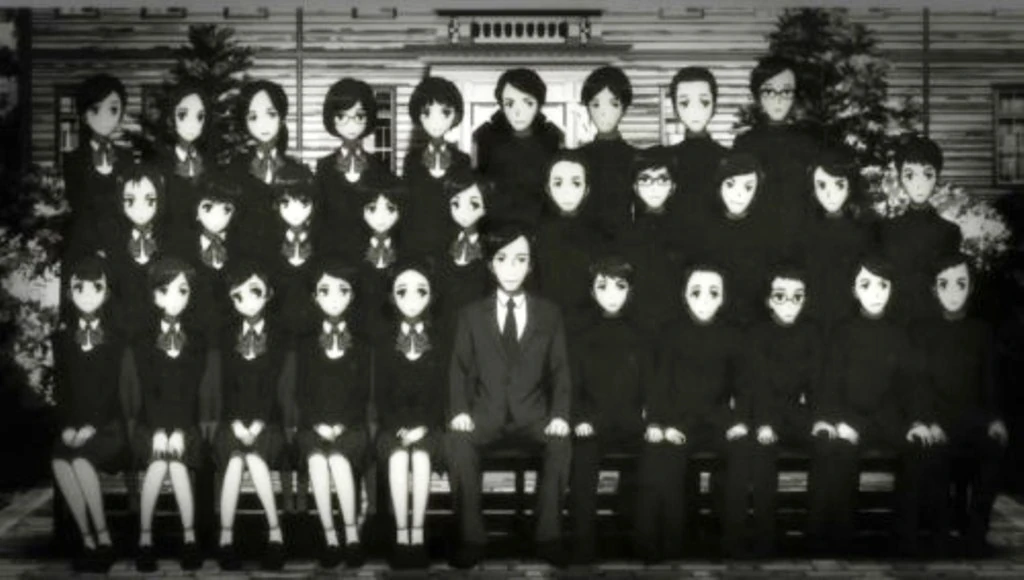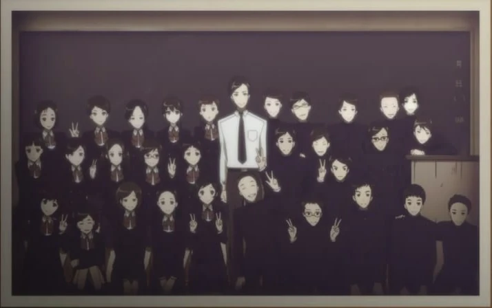Zdjęcie klasowe klasy 3-3 w 1972, na którym ukazał się martwy Misaki.