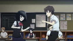 În clasă Naoya discută cu Izumi şi Tomohiko despre numărul de băncii de la începutul anului. Izumi precizează că numărul lor s-a micşorat cu una de când venit elevul transferat. Tomohiko spune că este posibil, conform lui Naoya ca calamitatea să fi început cu o lună întârziere. Naoya o întreabă pe Izumi dacă a verificat şi ea spune ce a aflat în urma vizitei de la spital, precizând în plus că nu are mâinile reci. În spate de tot Mei ascultă conversaţia celor 3.